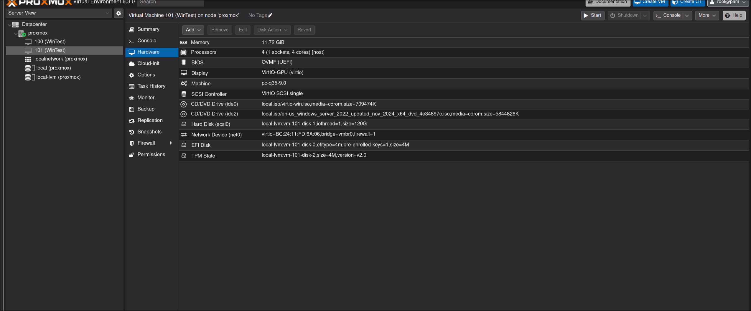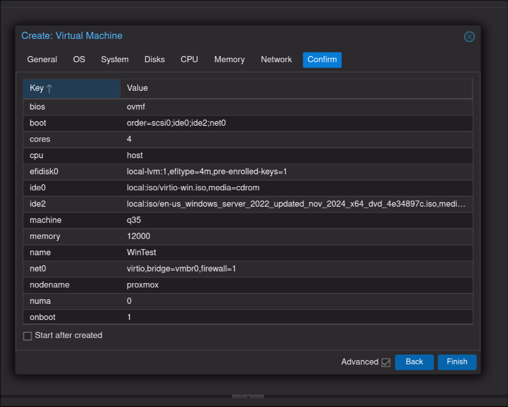 10. Start the VM. If it does not load the windows boot media hard restart the VM and spam the Enter key until it boots to windows.