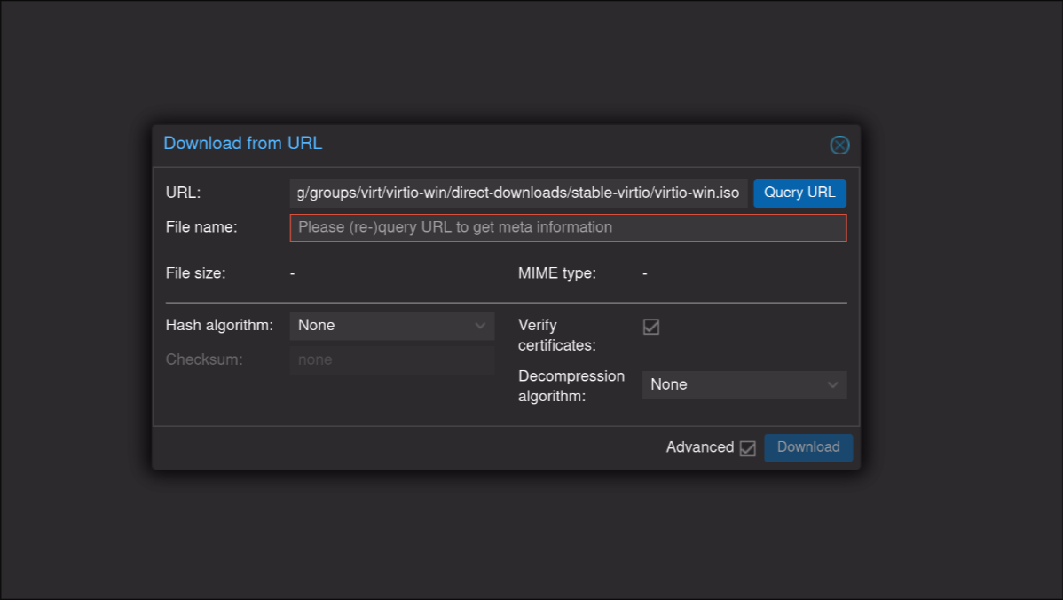 4. In the URL paste link below and choose Query URL. Then choose Download and wait for it to finish. These are drivers for windows.