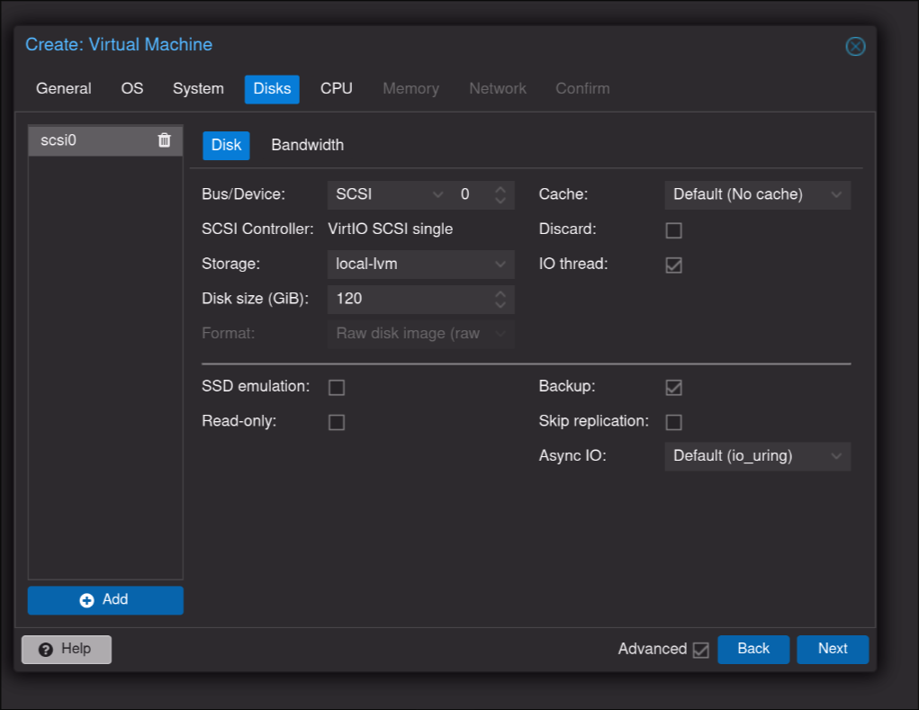 4. Change the Disk Size to the size you need and make sure to check IO thread and make sure the rest matches.